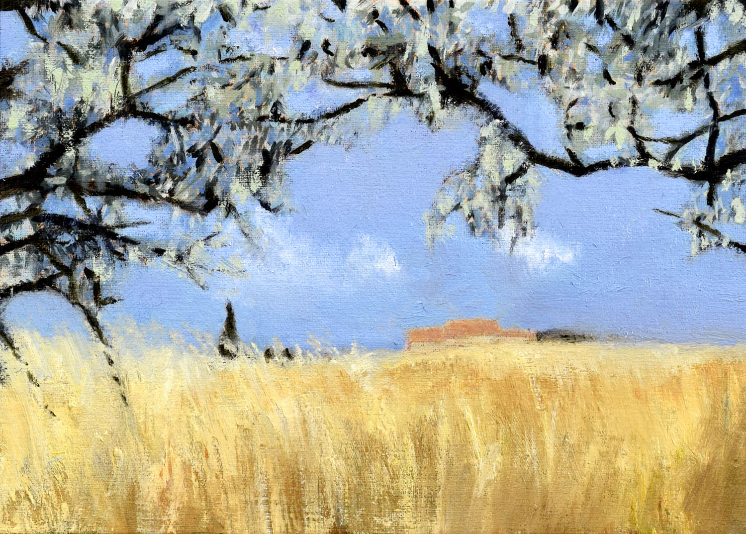 This second painting shows the Old Mayor’s farmhouse on the plateau of Clansayes haft hidden by the gold wheat field.